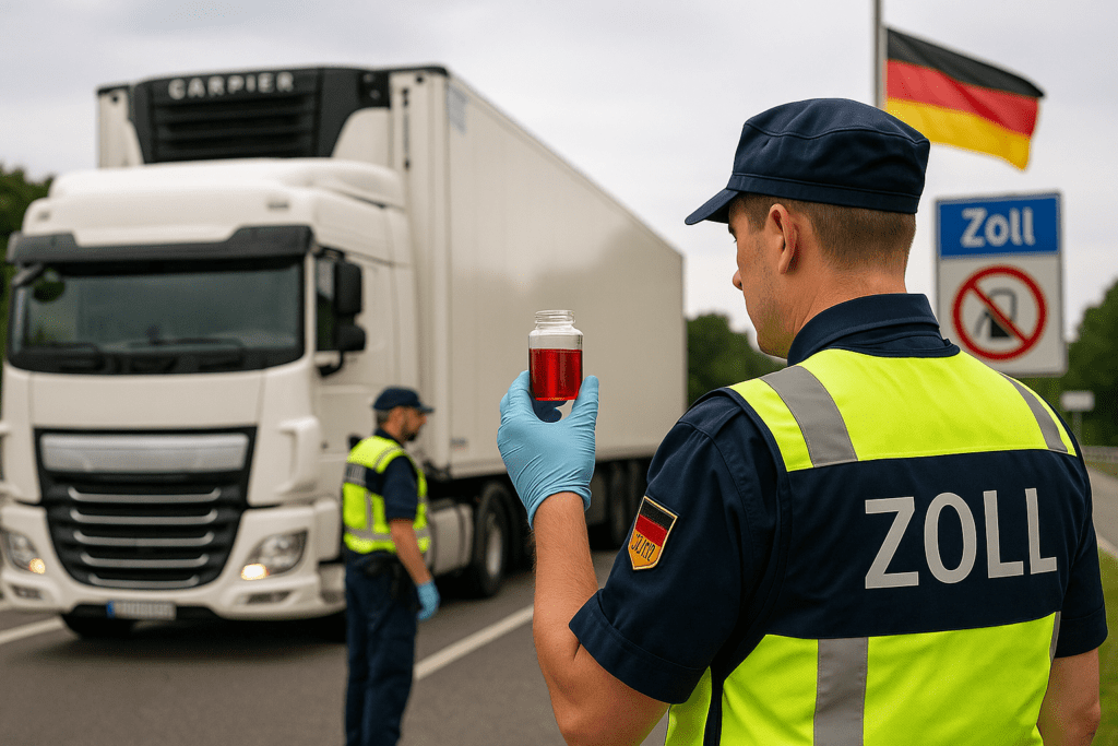 ¿Llevas frío a Alemania? GASÓLEO ROJO prohibido: ley, sanciones, protocolo del Zoll y diferencias con España. Evita multas, vaciados e inmovilizaciones.