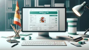 DALL路E 2024-05-31 15.53.49 – A blog entry image featuring a screenshot of a Spanish tax form (Modelo 046) with a green and white color scheme. The blog image should include a titl Deja un comentario / Por europa / 31/05/2024